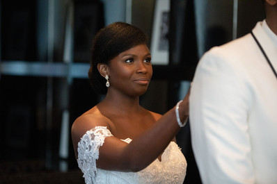 Gold chairs, an ombre cake, crystal-encrusted champagne flutes, and stunning floral centerpieces created an atmosphere of spirit and wonder at the reception. Whether dancing down the Soul Train line or lighting up the floor, the couple and their family and friends danced and celebrated with an eye toward the couple’s future. Jasmine and Jordan’s love tells its own story. It speaks of hope, promise, and commitment.